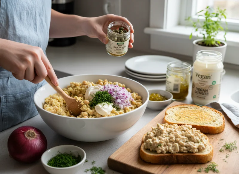 • The Texture Secret: Don’t over-mash! If you turn the chickpeas into a smooth paste, you’ve made hummus. The goal is to keep those flaky “shredded” pieces to maintain the tuna-like experience.