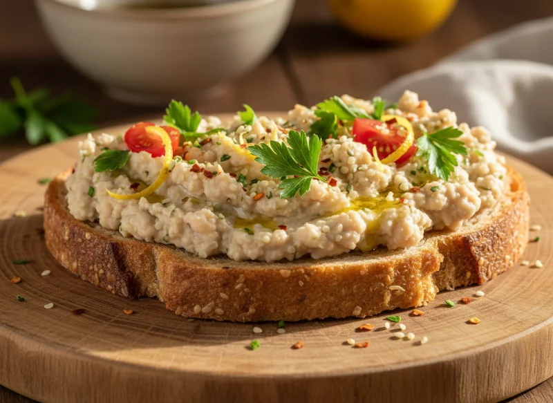 We focus on “Amino-Architecture”—the idea that our plant-based protein sources should be as bioavailable and satisfying as possible. This toast is a nutritional titan for several reasons. White beans, such as Cannellini or Great Northern, are an incredible source of plant-based protein and iron. They provide the essential building blocks for muscle repair and cognitive endurance. When paired with a slice of high-quality, toasted sourdough, you are getting a complex carbohydrate source that ensures a slow, steady release of energy throughout the afternoon.