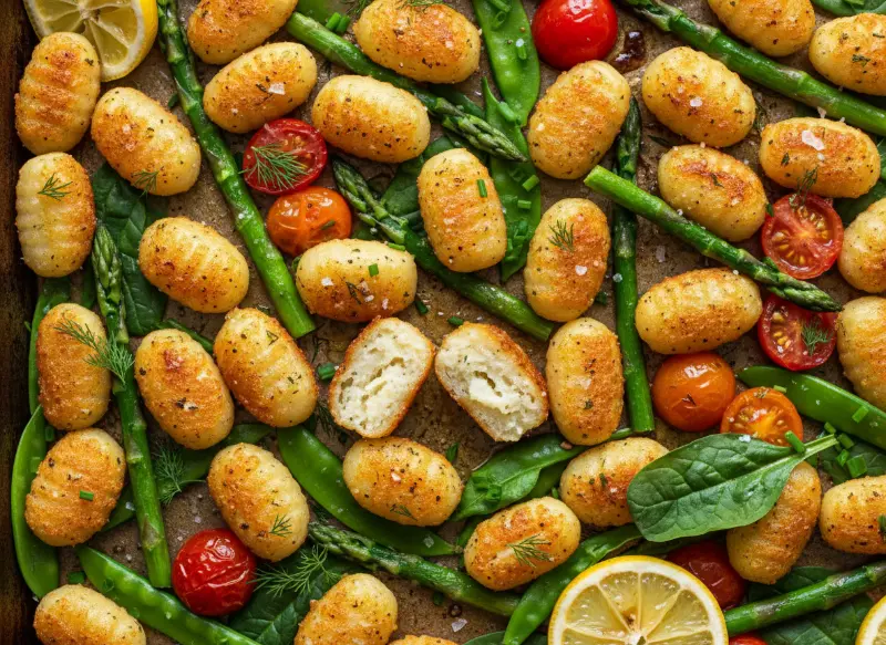 - The Chlorophyll-Lock: We use a high-heat, short-duration roast (425°F). This preserves the chlorophyll in the spring greens, keeping them vibrantly green and nutrient-dense while achieving the Maillard reaction—those savory charred bits—on the gnocchi.